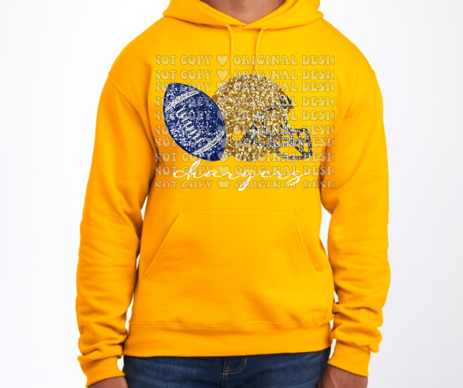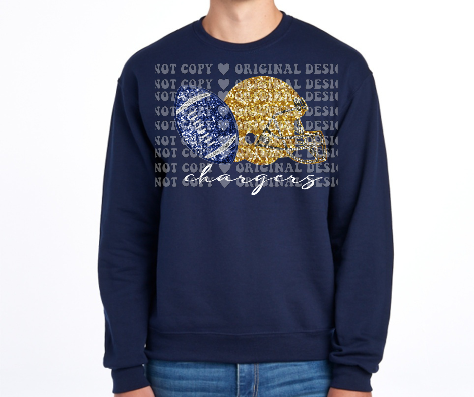 Chargers Faux Glitter Football Helmet Cotton/Poly Blend Top Options Mio Chargers 2025