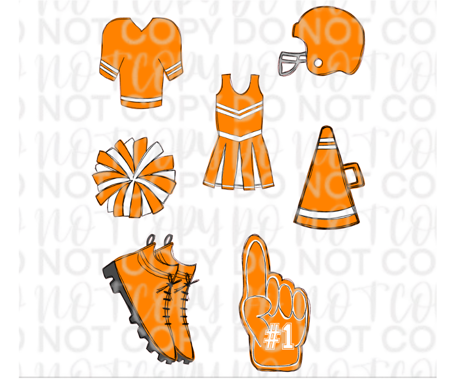 This fun design comes with the Ogemaw Browns Mama design on the chest with a fun optional sleeve detail. If you'd like to add kid's names & graphics to the sleeve please use the customization box and include which designs (pictured... football jersey, helmet, cheer uniform, pom, megaphone, cleats, foam finger). If you'd like them in a certain order (top to bottom or left sleeve vs right sleeve) please note that detail too or I will just go in order they are listed (my personal top has 7 children between the two sleeves so we've got room if you have a handful of kids you'd like).