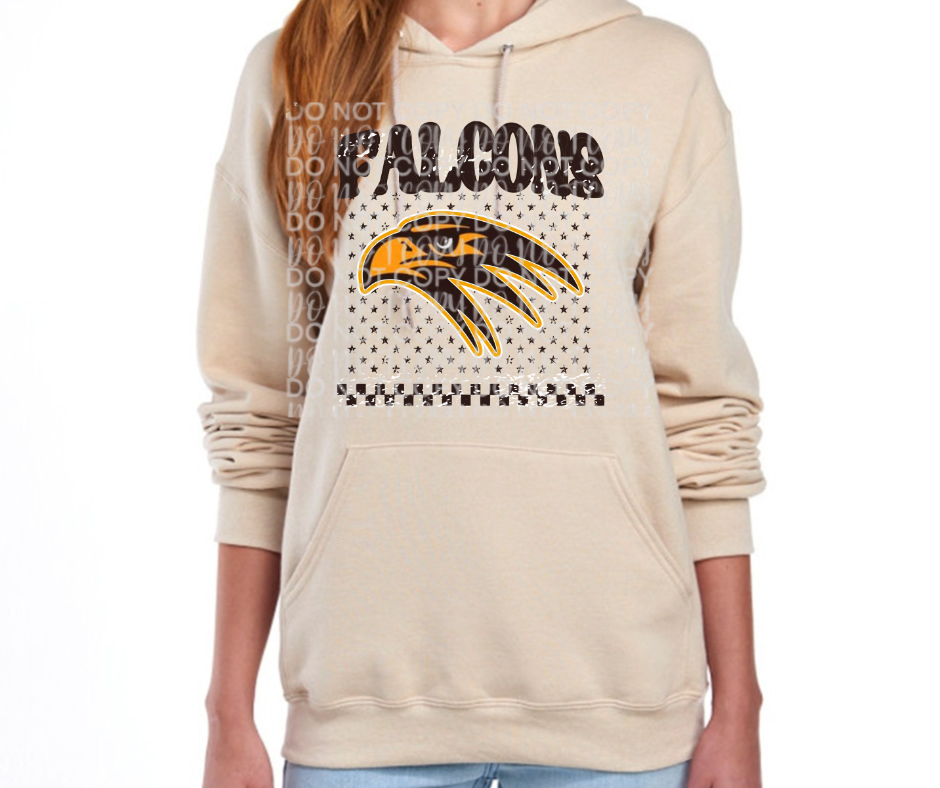 Ogemaw Falcons 2025 Distressed Falcons Stars Logo Cotton/Poly Blend Top Options