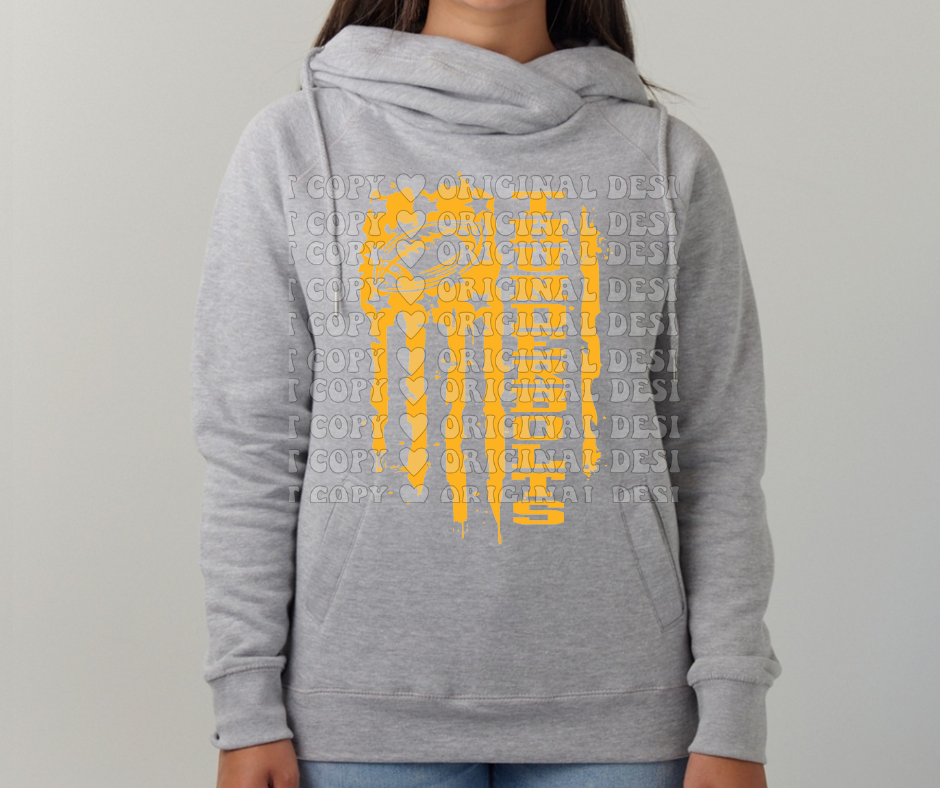 Coloring of design may shift to help it pop on the top color you choose. All tops will have a DTF print.