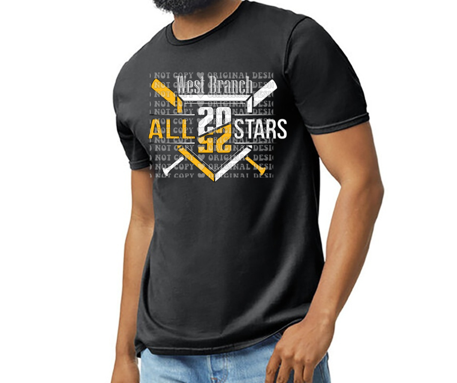 Lets Go West Branch Allstars 2025!!! All tops will come with a full roster back of all the teams & players names <3